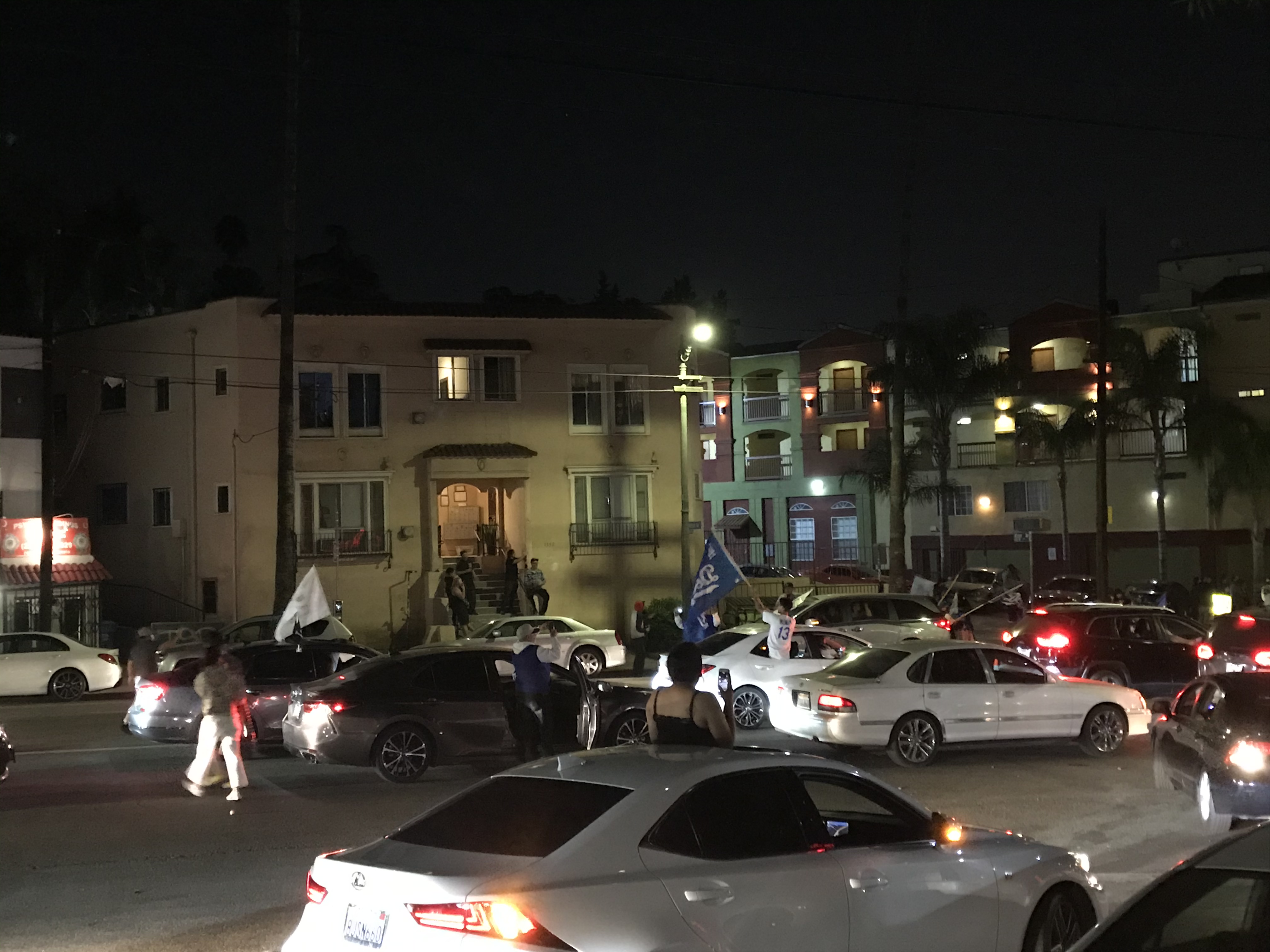 In order to get to the Coffee Bean as promised, my wife and I needed to cruise down Sunset Boulevard from Echo Park to Hillhurst Avenue. We could hear cars honking in the distance as we walked to the car. Once on Sunset, we witnessed the euphoria of that morning first-hand. There were throngs of people at every intersection celebrating with American flags and home-made signs denouncing Trump. The cars on the street were honking the entire way in the unified celebration. There was positivity all around Los Angeles. Even those who were not out strictly celebrating were in a better mood than before. It was a glimmer of hope for a brighter, more inclusive future that would begin in 2021.