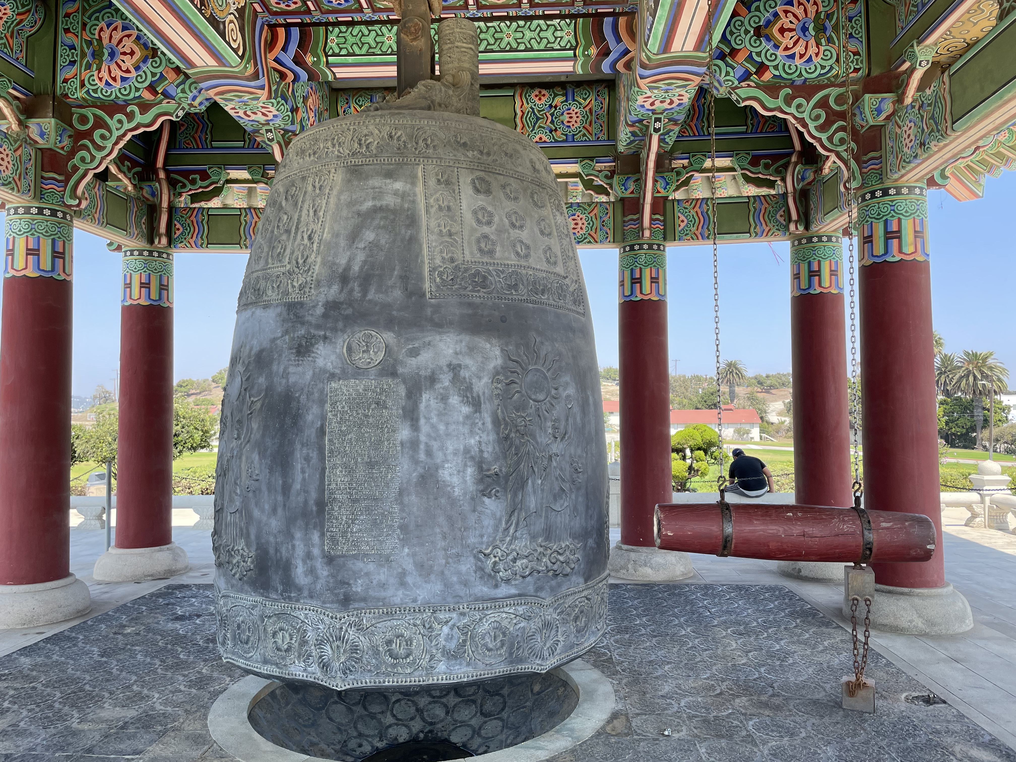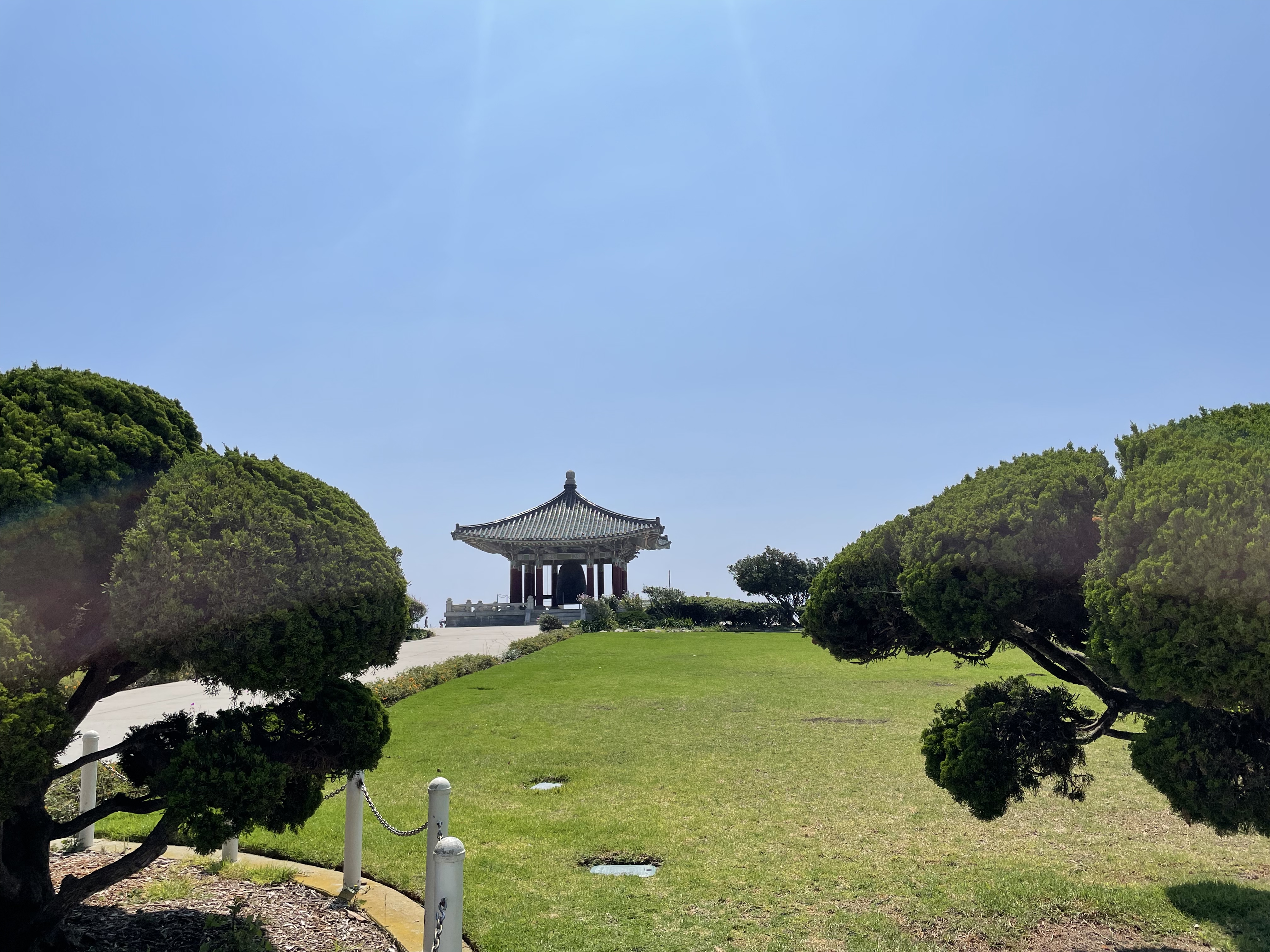 The goal of our trip was to show the kids the Korean Friendship Bell at Angel’s Gate Park. After what felt like hours in traffic, we made it. It was a clear and windy afternoon. You could easily spot Catalina Island from the top of the park. There was a small film crew preparing for a video shoot scheduled to take place later. At the basketball court, a young man and his sister were practicing with the beach in the background. And on the grass, couples sat watching the beach.