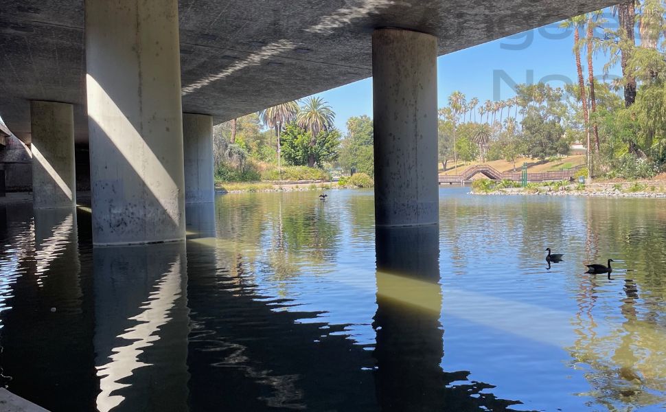 If you’re looking to grasp the extent to which the freeways changed Boyle Heights, all you have to do is visit Hollenbeck Park. The greenspace runs across St. Louis Street from the Boyle Avenue and Hollenbeck Drive intersection to 4th Street. At its southernmost edge, the park’s lake is beneath the overpass and in complete darkness – even on the brightest days.